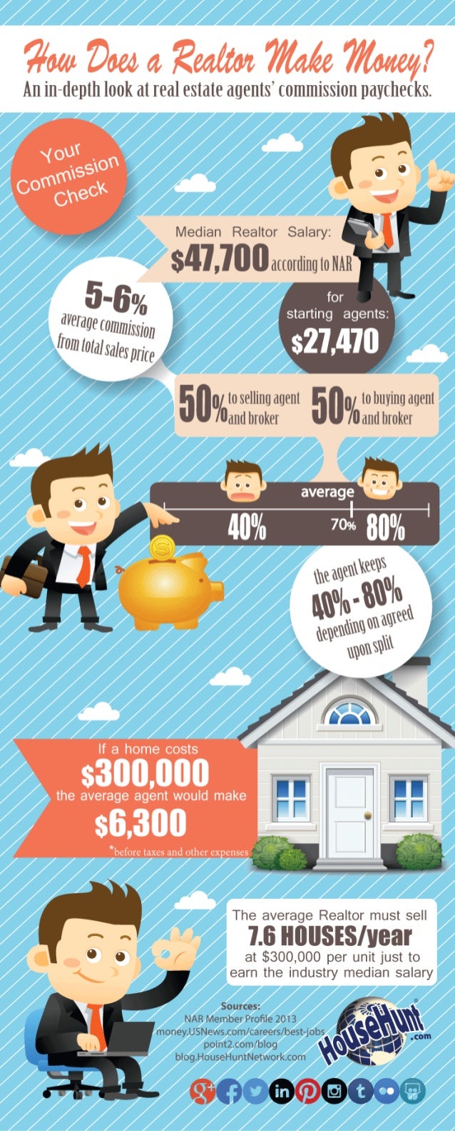 This fee is typically paid by the seller at closing and gets deducted from the seller's money and given to his agent. So how do realtors get paid when you buy a house? How much do similar professions to realtor get paid? An example for, how do realtors get paid? Brokers while agents rely on commissions for income, they usually only get a slice of the pie. For those new to the world of real estate, the market can present all sorts of confusing dynamics. A seller pays the realtor fees for both parties. Hiring a realtor is step #2 in our new home buyers guide. Realtors are paid a commission based on the sale price of the properties they sell. How do realtors get paid? Realtors are paid for selling marketing, legal, negotiation and other services during a real estate transaction. Wondering how a realtor gets paid? How to save money on realtor commissions.